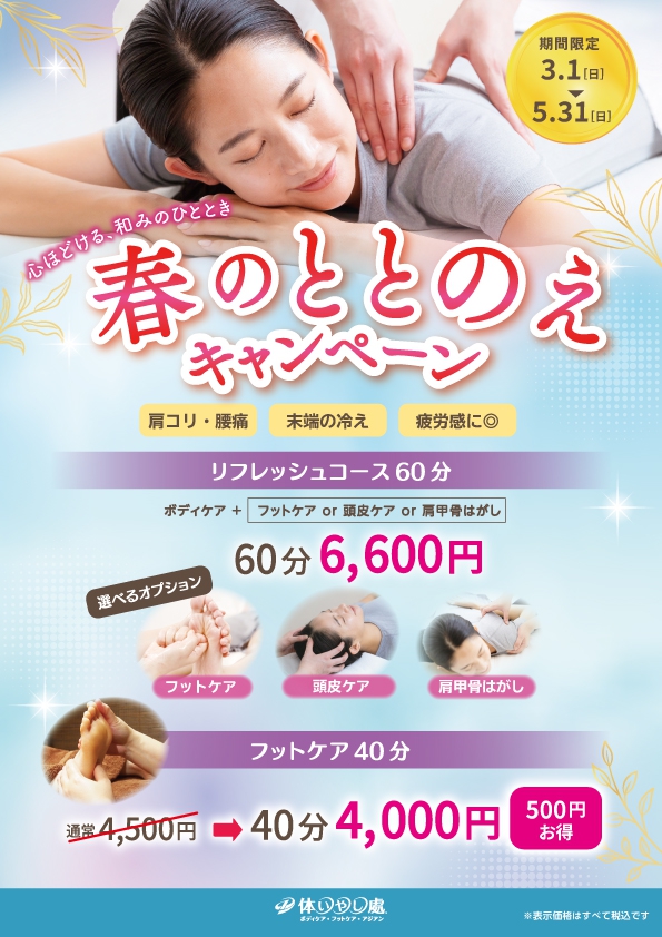 【2026年3月1日~5月31日開催】リラクゼーション 春のととのえキャンペーン