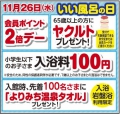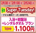 [温泉] 9:00~23:00(土~24:00) [岩盤浴] 9:00~22:30 [リラクゼーション] 10:00~22:00 [レストラン] 平日11:00~22:00(土日祝9:00~) ※最終入館受付 22:00、ラストオーダー 月~木21:00 金~日21:30 |