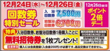 超おトク!回数券特別セール開催!(回数券のご購入で、それぞれの無料招待券をプレゼント)