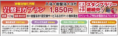岩盤ヨガプラン(入浴+岩盤浴+岩盤ヨガ)がセットで 1,850円!!