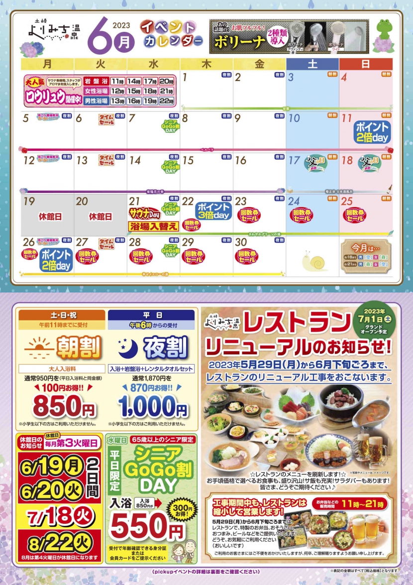 2023年6月21日(水)~25日(日)さわやかグリーンの湯