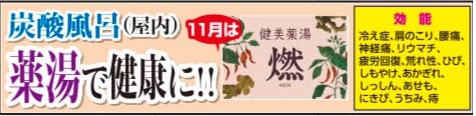 11月の薬湯は、健美薬湯燃(ねん)
