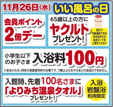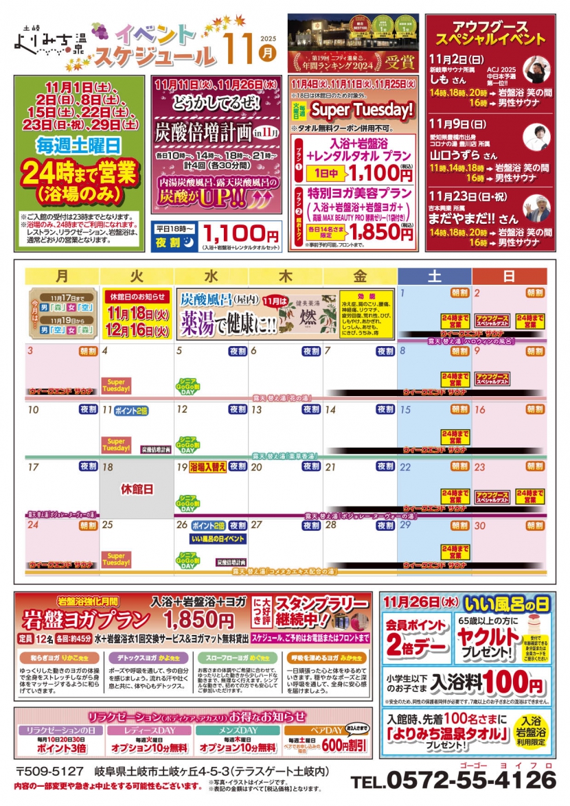 【2025年11月平日毎週火曜日開催】Super Tuesday(毎週火曜日は、岩盤浴がオトク!)