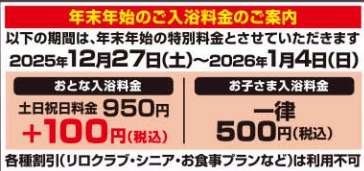 【年末年始 特別料金のお知らせ】